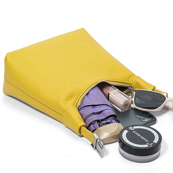 Crafted from premium full‑grain genuine cowhide, its sleek dumpling‑style crescent shape feels soft yet structured, moving from early meetings to late dinners with graceful ease. A smooth zipper with an added lock closure keeps life’s essentials secure, while the polyester‑cotton lining and thoughtful pockets make every reach feel considered. Carry it handheld or wear it crossbody; its medium scale stays light and refined without ever overwhelming your look.