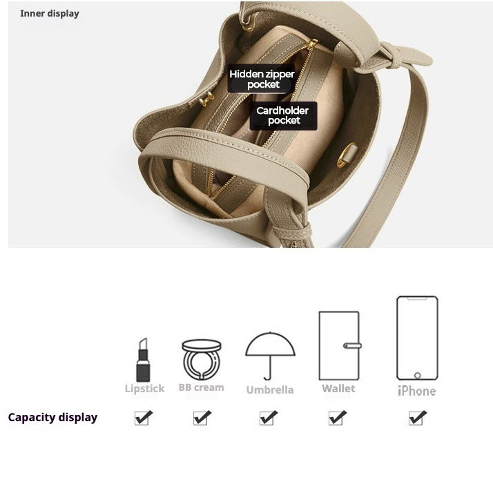 Quiet luxury, held close—the Women’s Genuine Leather Mini Picnic Crossbody Bucket Bag brings a calm, feminine confidence to every moment.