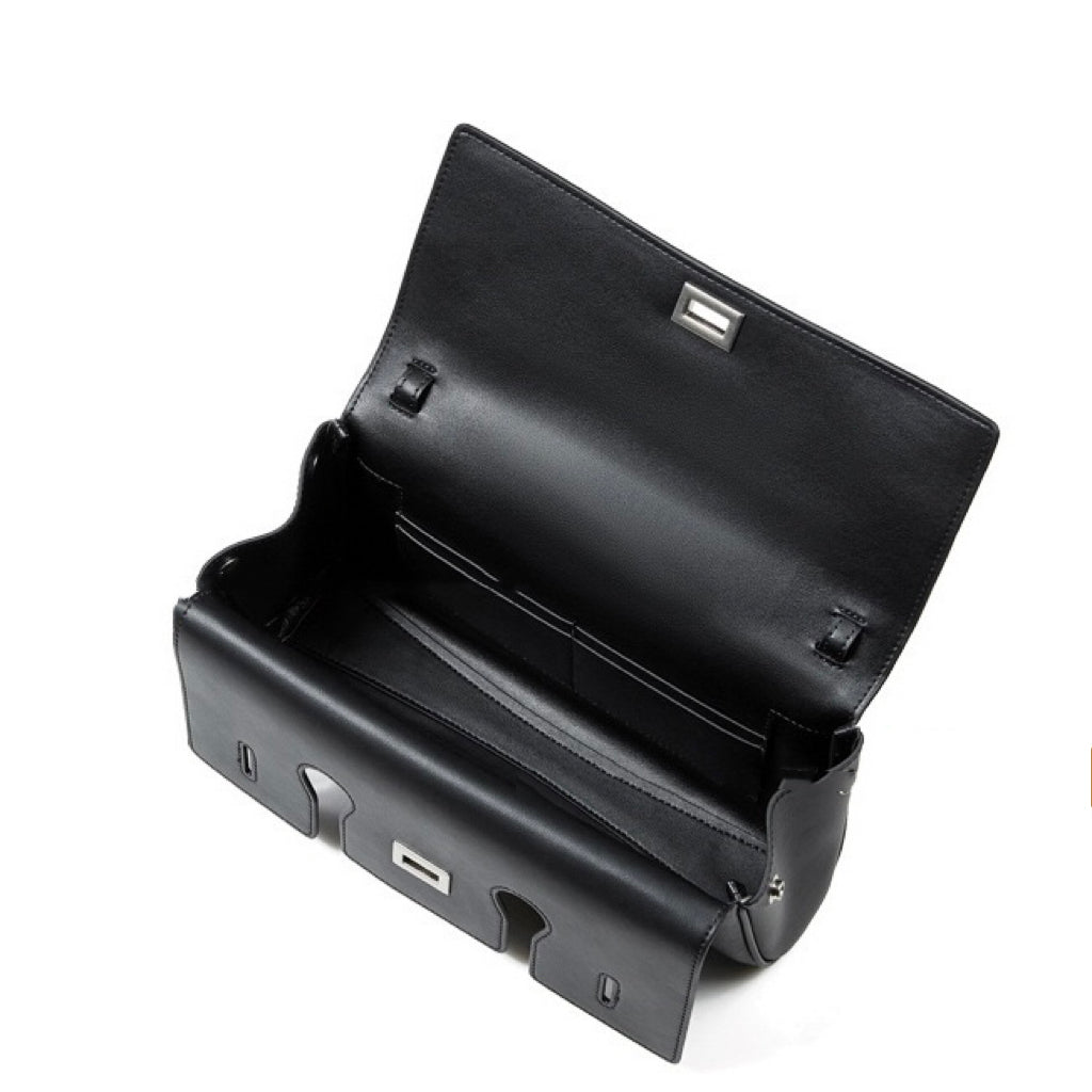 Slip into a calmer kind of confidence—the Genuine Leather Designer Lock Clasp Shoulder Handbag rests neatly at your side and makes every moment feel beautifully composed.